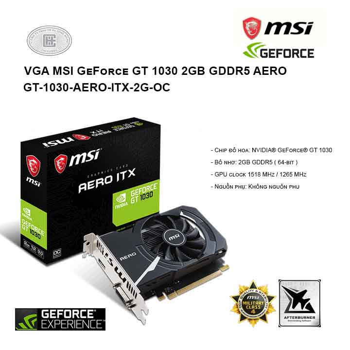 VGA MSI GeForce GT 1030 2GB GDDR5 AERO (GT-1030-AERO-ITX-2G-OC)