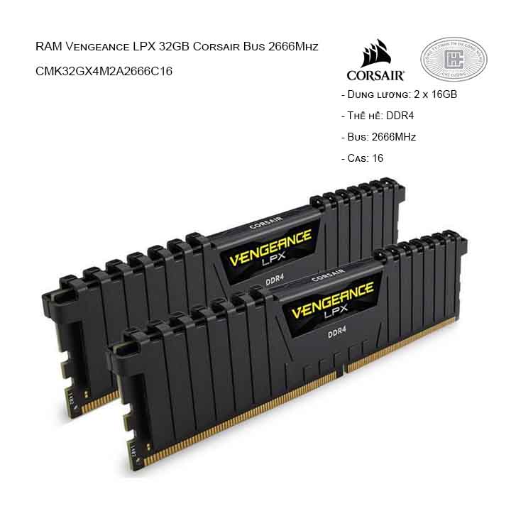 RAM 32GB Corsair CMK32GX4M2A2666C16 được trang bị với dung lượng lên đến 32GB (2 x 16GB) tạo được bộ nhớ lưu trữ tạm thời lớn, hỗ trợ cho quá trình xử lý công việc của máy tính được nhanh hơn và hiệu quả hơn.