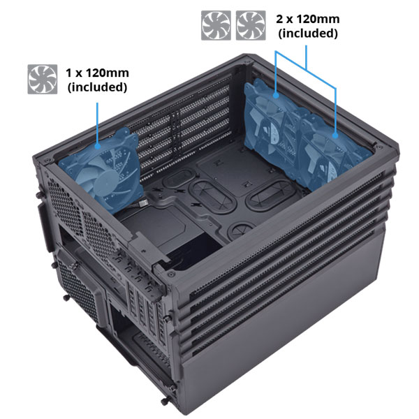 Top: (x2) 120mm, Bottom: (x2) 120mm, Rear: (x2) 80mm, Side: (x1) 120mm,