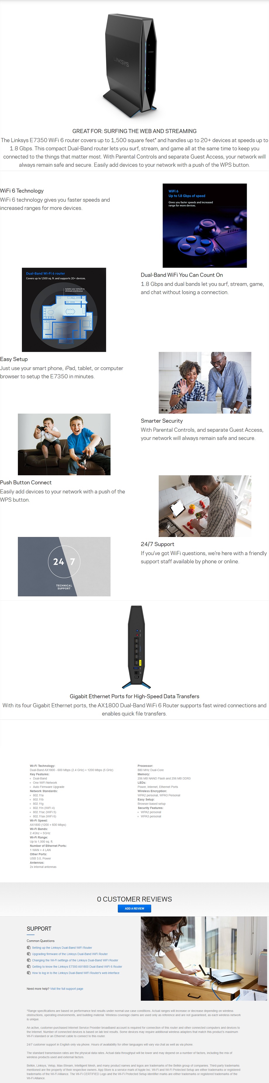 LINKSYS E7350-AH MAX-STREAM AX1800 DUAL-BAND EASY MESH WIFI 6 MU-MIMO GIGABIT ROUTER